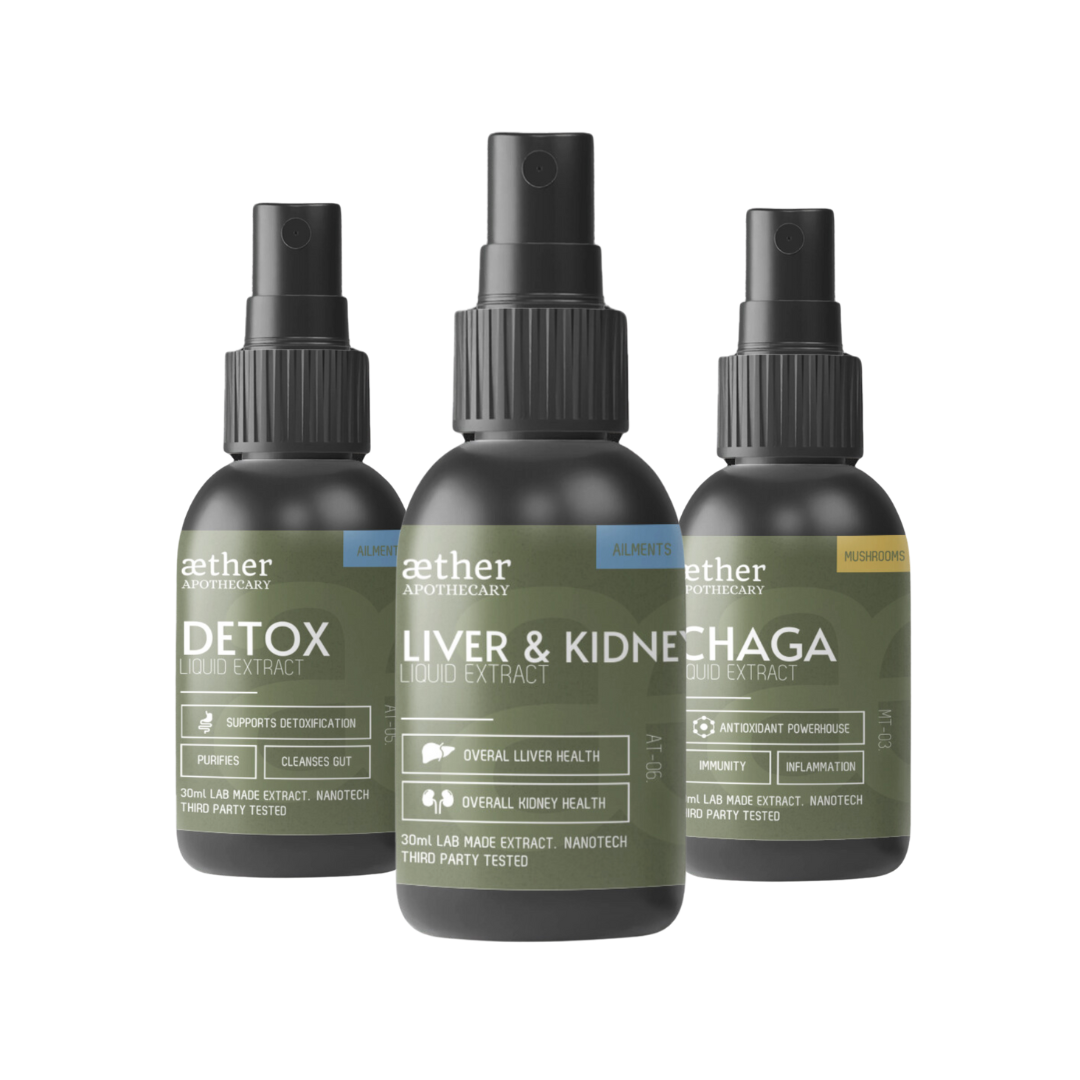Liver & Kidney Extract (30ml) – A potent herbal blend to support healthy liver and kidney function, ease the detox load and help clear metabolic waste more efficiently. Perfect for periods of overindulgence.